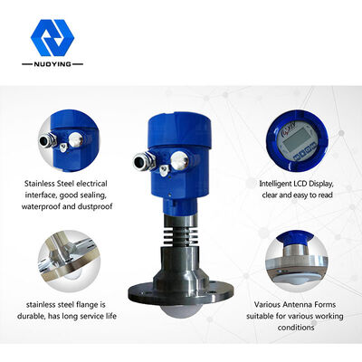 Der Radarniveaumesser der Serie NYRD80X ist ein 26-GHz-Hochfrequenz-Radarmessgerät mit einer maximalen Messentfernung von 80 m. Die Radar-Objektpositionsantenne emittiert einen schmalen Mikrowellenimpuls, der über die Antenne nach unten gesendet wird. Nachdem die Pulsation die Oberfläche des gemessenen Mediums berührt, wird sie reflektiert und vom Antennensystem wieder empfangen. Das Signal wird an die elektronische Schaltung gesendet und automatisch in ein Objektniveau-Signal umgewandelt (da sich Pulse sehr schnell ausbreiten, ist die Zeit, die eine elektromagnetische Welle benötigt, um ihr Ziel zu erreichen und zum Empfänger zurückzukehren, fastaugenblicklich).